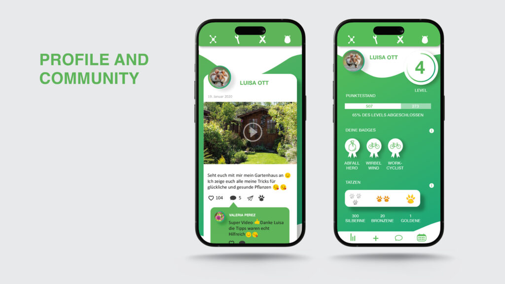 Methods like personas, player types and different types of game mechanics were intentionally implemented into the user experience of the app to address these challenges.