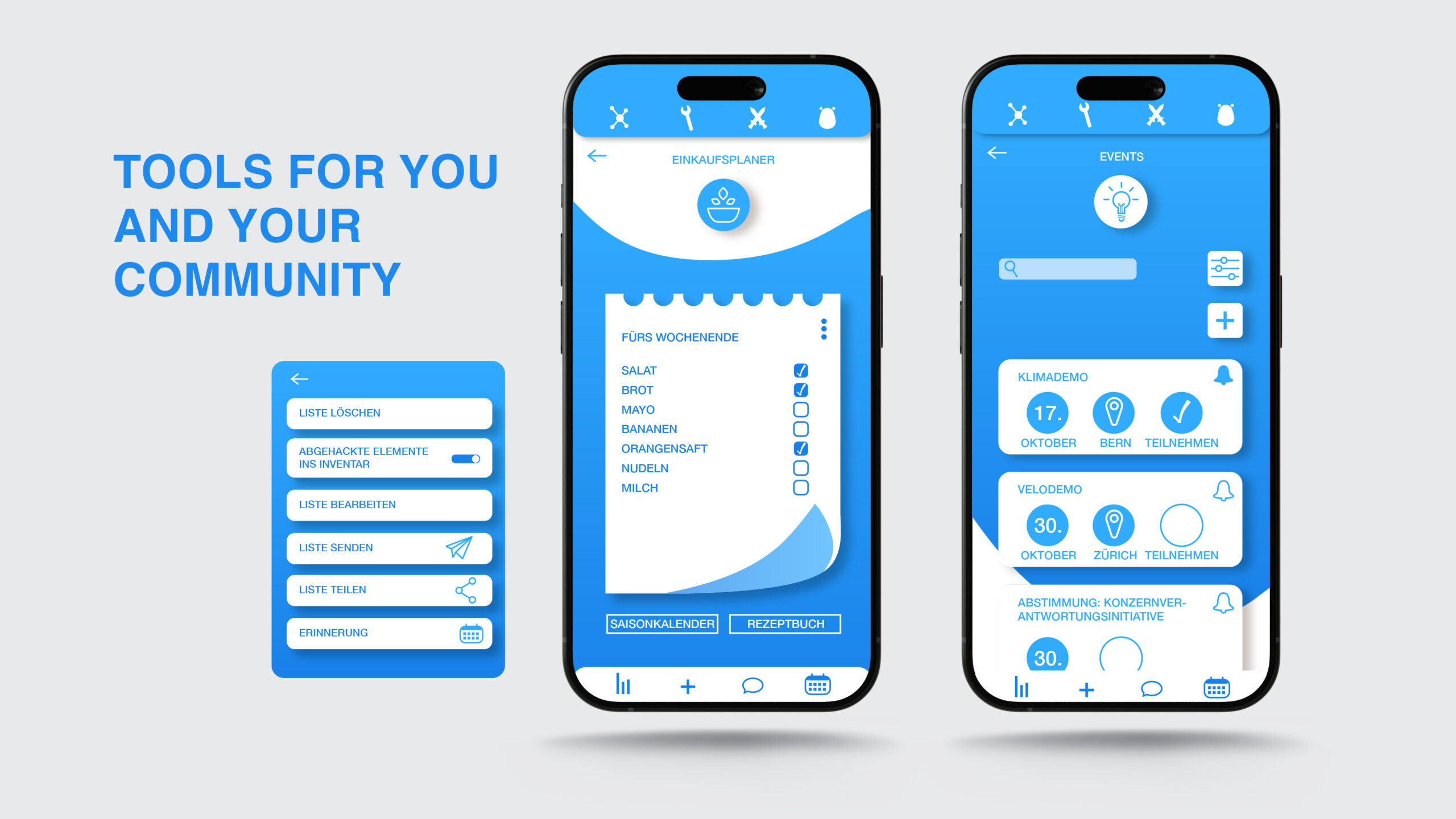 The aim of Fair Bair is to provide a comprehensive and viable set of tools to develop a more sustainable life style. The core concept of the app to is build around every users personal needs. Dividing sustainability into different categories helps the users to explore and develop their individual impact on sustainability issues. The app shall create a space to exchange and learn about sustainability and thus visualize a positive future and empower the people inside the community.